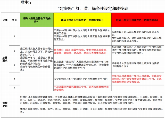 綠碼應符合:施工現場從業人員年齡18周歲以上、女性55周歲以下,男性60周歲以下。
