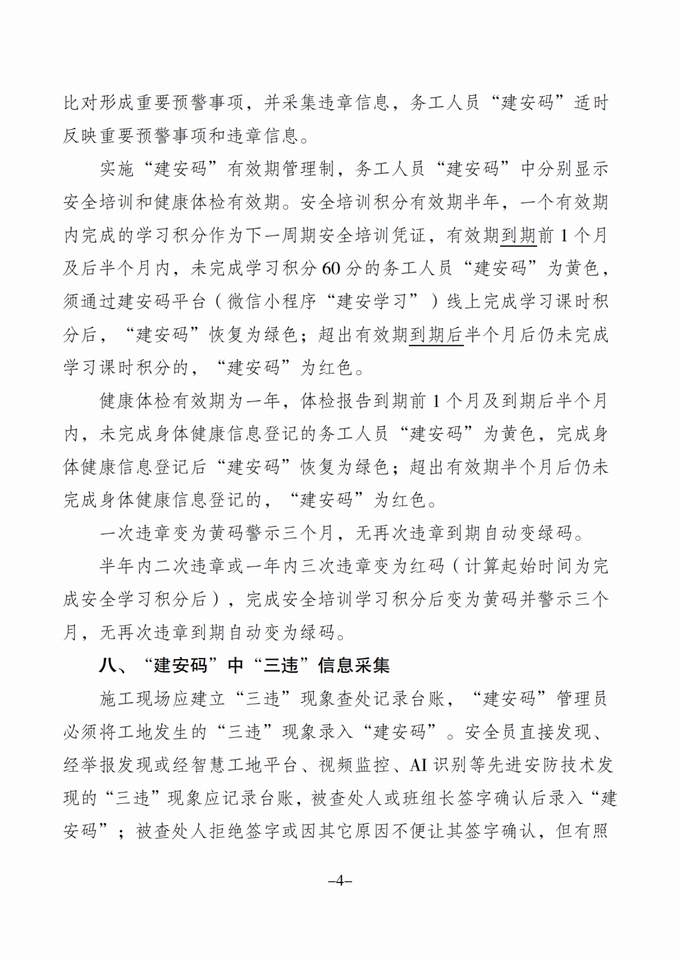 (二)加強日常安全監督管理。試點三地建設主管部門要根據《方案》要求,將“建安碼”使用情況納入日常安全監督抽查內容,定期對試點項目系統應用情況進行排名,對覆蓋率和使用率較低的項目和單位進行通報。