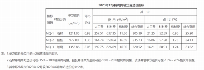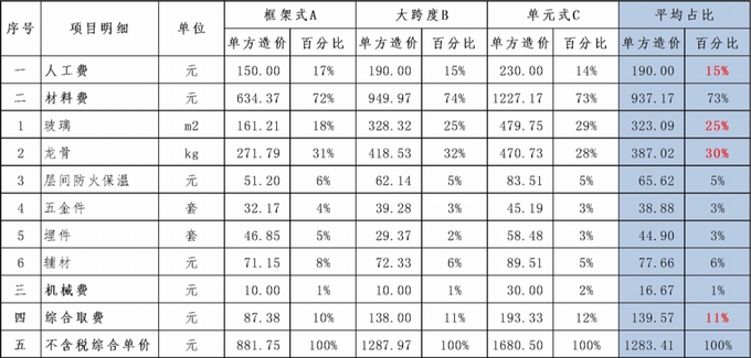 (3)影響成本的因素還有:五金件、預(yù)埋件、耐候膠的品牌等因素