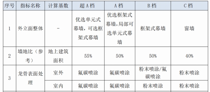 某開(kāi)發(fā)商對(duì)于辦公項(xiàng)目幕墻體系的定位要求
