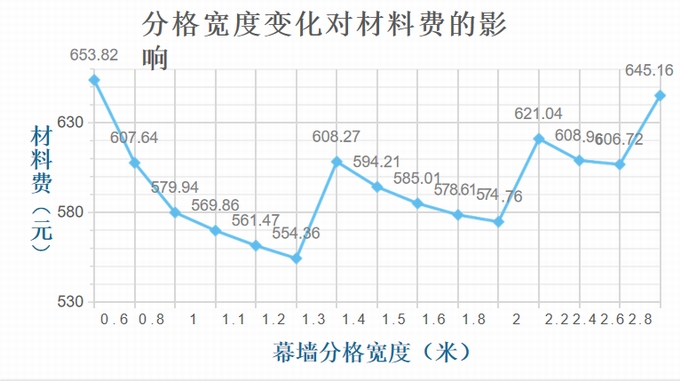 幕墻分格尺寸的寬度在1.2~1.3米時(shí)經(jīng)濟(jì)性最優(yōu)。