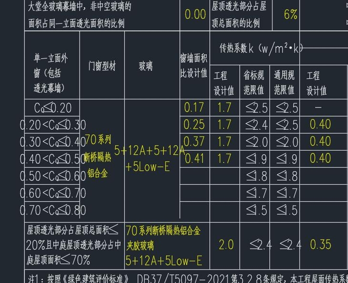 建筑節(jié)能設(shè)計(jì)專篇對(duì)整窗傳熱系數(shù)要求為1.7,玻璃采用