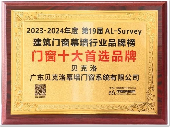 貝克洛榮獲2023-2024“門窗十大首選品牌”