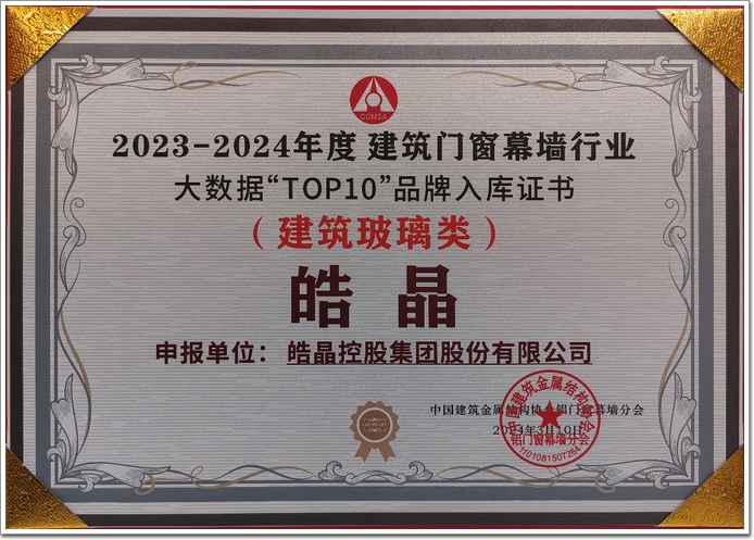中國(guó)建筑金屬(詞條“金屬”由行業(yè)大百科提供)結(jié)構(gòu)協(xié)會(huì)鋁門窗幕墻分會(huì)組織開展的“第19次行業(yè)數(shù)據(jù)申報(bào)工作”得到了行業(yè)內(nèi)企業(yè)的大力支持,收集到了來(lái)自行業(yè)內(nèi)近千家企業(yè)的年度行業(yè)數(shù)據(jù)。在此基礎(chǔ)上,分會(huì)為了更好服務(wù)行業(yè)并遴選出優(yōu)質(zhì)企業(yè)與品牌,開展了“建筑門窗幕墻行業(yè)品牌大數(shù)據(jù)入庫(kù)推薦”活動(dòng),并于3月10日年會(huì)上為入選企業(yè)頒發(fā)入庫(kù)證書。其中“皓晶”作為2023-2024年度建筑門窗幕墻行業(yè)大數(shù)據(jù)“TOP10”品牌入庫(kù)(建筑玻璃類)上榜企業(yè),上臺(tái)領(lǐng)取了榮譽(yù)證書。