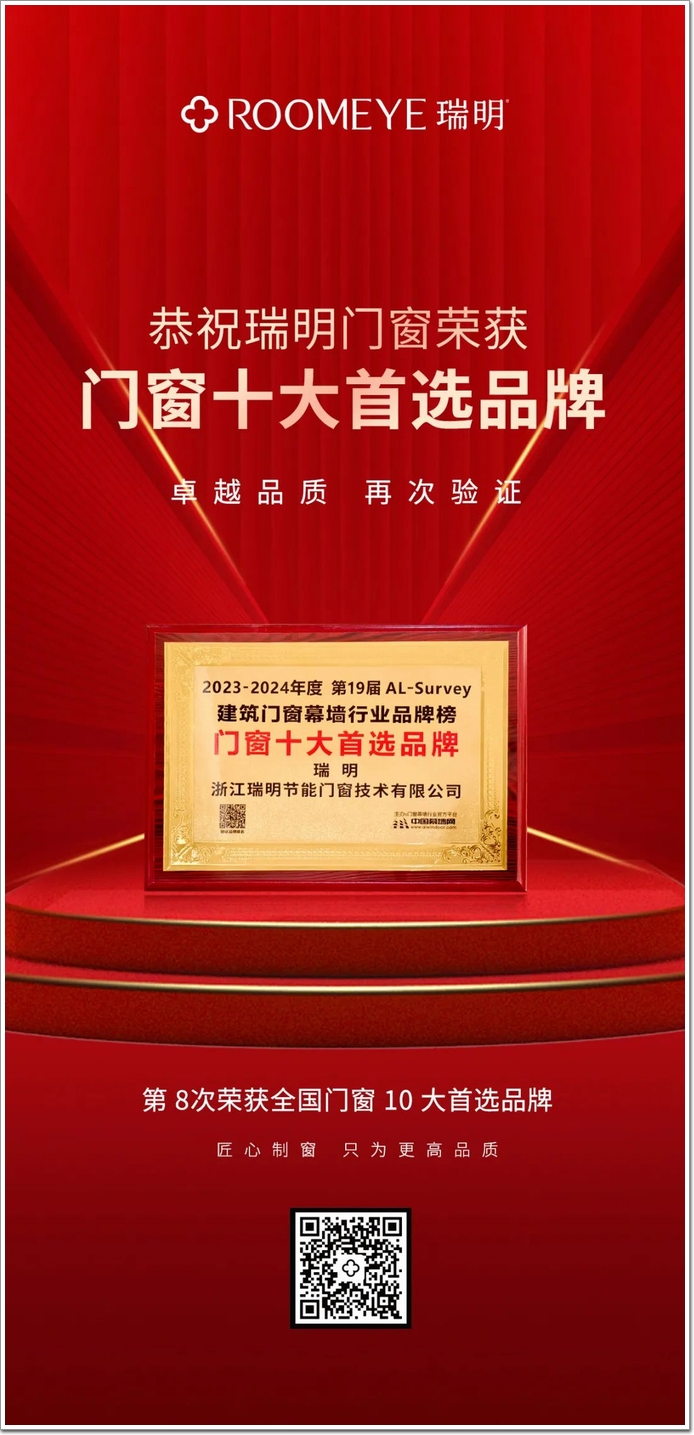 瑞明榮登中國門窗十大首選品牌,是權威對瑞明產品品質的認可與肯定!