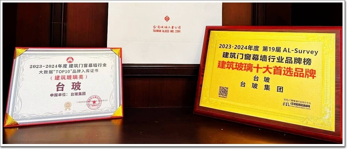 “臺(tái)玻”作為2023-2024年度建筑門窗幕墻行業(yè)大數(shù)據(jù)“TOP10”品牌入庫(kù)證書(shū)(建筑玻璃類)上榜企業(yè),上臺(tái)領(lǐng)取了入庫(kù)證書(shū)。