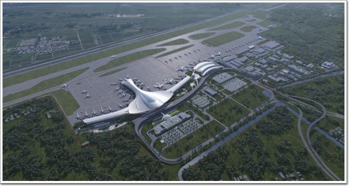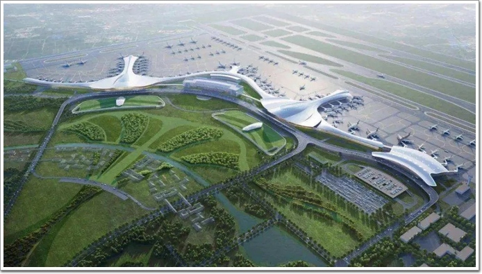 根據項目效果圖顯示,擴建后的揚泰國際機場規模更龐大!本次擴建工程新增用地約1741.44畝,項目建成后機場總占地面積4912.69畝,項目總投資預計557508.18萬。