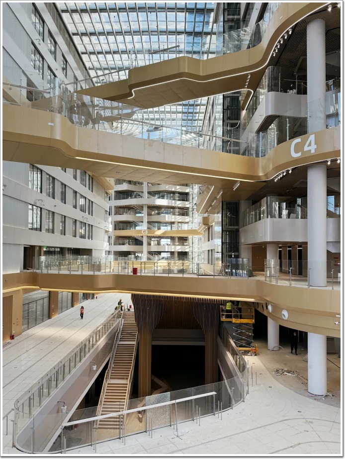 為了激發共享思維、互動機率和創新效應,各地塊在核心位置設置共享中庭作為員工聚合與互聯的空間。功能分布的組織和空間體驗的層次也從共享中庭延伸,充分體現空間的交互性。