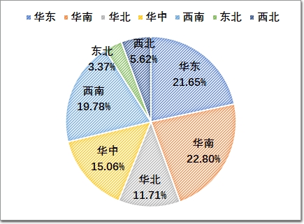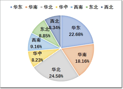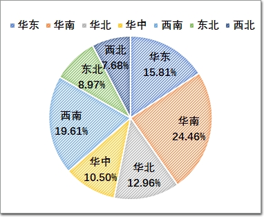 2023年,建筑膠行業的總產值約200億左右,產品應用主要在門窗、幕墻,以及中空玻璃等領域,總體占比超70%;家裝、電子、工業等方面的用膠需求逐年上升,也是品牌膠企愿意加大投入的主要多元化市場。在區域市場分布中華南和華北成為最突出的版圖,兩者占據了近45%的份額。