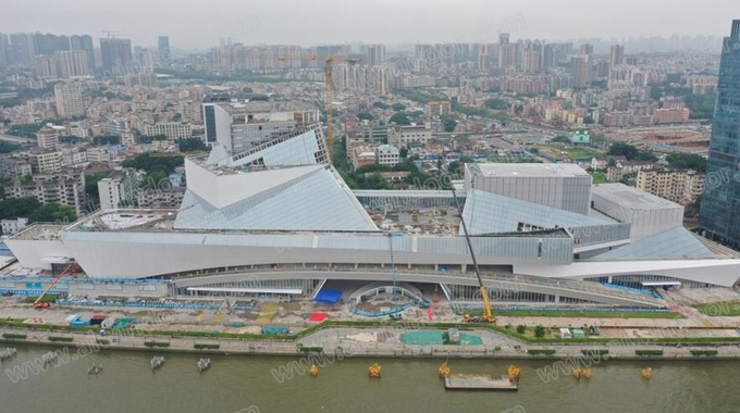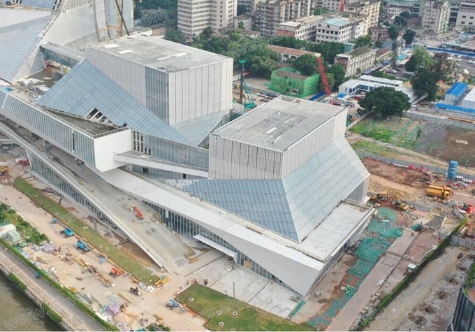 高標準才能造就高品質,“三館合一”項目在建設過程中,業主、建筑師、總包、監理要求極高,針對幕墻施工有對應地管理手段和措施,現場驗收程序嚴謹;幕墻工程質量要求標準高,不僅要達到驗收合格標準,同時要確保整體工程獲得“魯班獎”,施工過程中項目還舉辦了多場省級和國家級的現場觀摩會。可以預見,今年年底前,將有一個超高標準的示范工程,宛如一艘“文化巨輪”揚帆珠江,呈現在世人面前。