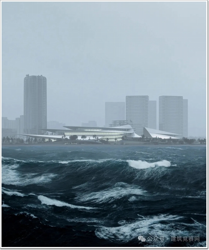 三亞文化藝術中心包含歌劇廳、多功能廳及其他配套等功能!從渲染后的設計效果圖來看,這座建筑的威力,與自然的力量和美麗大海形成對比。