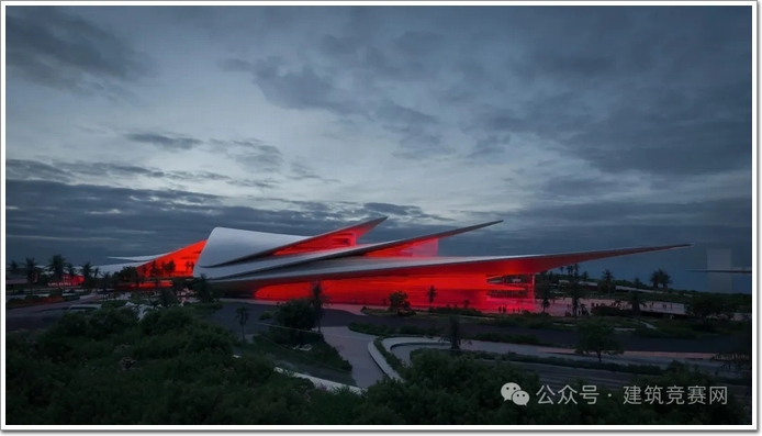 尤其是歌劇院,像一艘艘急待出海的戰艦!勇敢地矗立在波濤洶涌的熱帶海洋中,紅色燈光渲染中透露出一絲反烏托邦的氣息,其靈感源自建筑屋頂設計時“帆”的顏色。如此前沿的設計效果,更是讓人非常期待:在高品質幕墻加持后,最終的呈現效果!