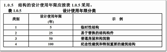 △ 設計使用年限表 ©建筑結構可靠度設計統一標準(GB50068-2001)