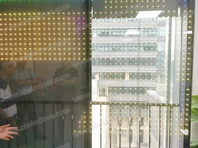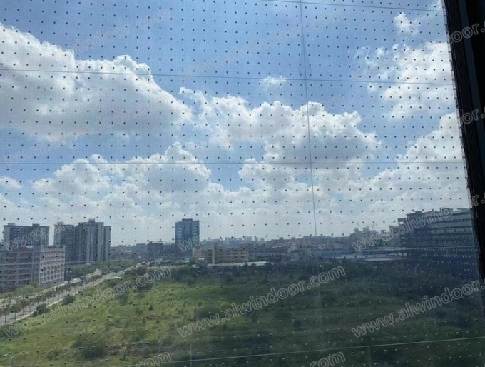 透明屏一般采用導電玻璃膜或金屬壓線的方式,LED燈珠焊接在經過激光劃線的導電玻璃表面或焊接在金屬絲線上。透明屏可以降低遮陽系數10~20%