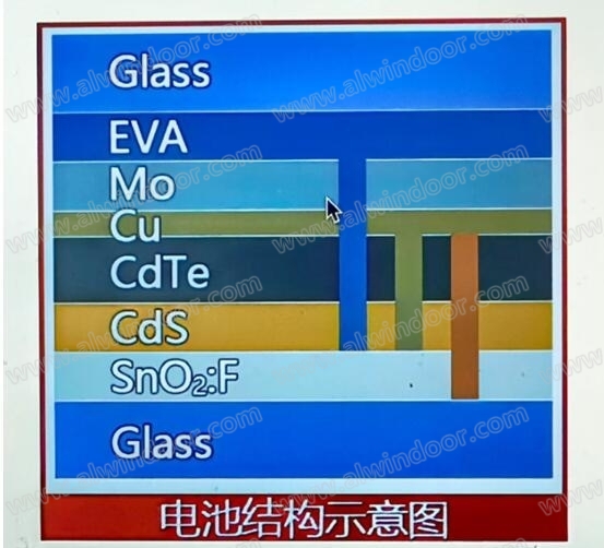 諦化鎘薄膜發電組件、是在玻璃表面依次沉積多層半導體薄膜,再經過激光刻蝕而形成的光伏器件。發電原理:太陽光照射到玻璃后,激發半導體Cds/CdTe產生電勢,從而輸出電流對外做功。