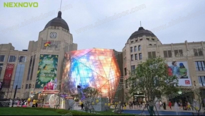 是由LED燈條組成的格柵形式的屏幕,視覺粗笨,發熱量高。格柵屏的屏幕表面設置有可見格柵,通過LED燈光源在格柵線之間閃爍,形成圖像和文字,但可能產生反射和眩光。格柵屏可以降低遮陽系數約30~40%。