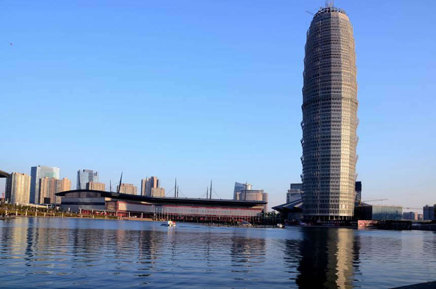 鄭州會(huì)展賓館的鋼筋混凝土核心筒結(jié)構(gòu)(詞條“核心筒結(jié)構(gòu)”由行業(yè)大百科提供),總建筑面積為24萬(wàn)平方米,主樓為56層,地下3層,呈279.30米高塔狀建筑。