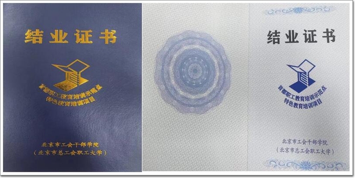 培訓合格后,由北京市總工會、中國建筑金屬(詞條“金屬”由行業大百科提供)結構協會鋁門窗幕墻分會和北京建筑材料檢驗研究院股份有限公司共同頒發結業證書,作為參與繼續教育證明。