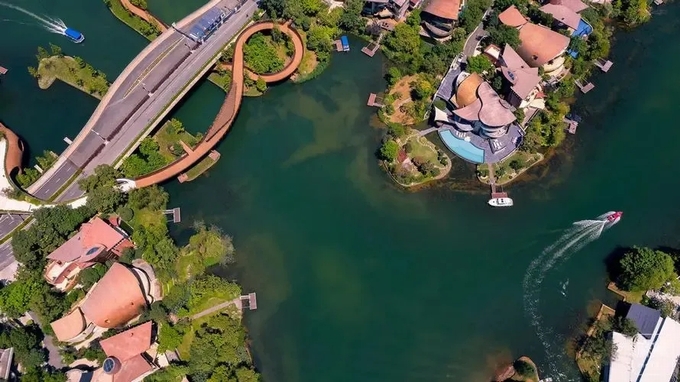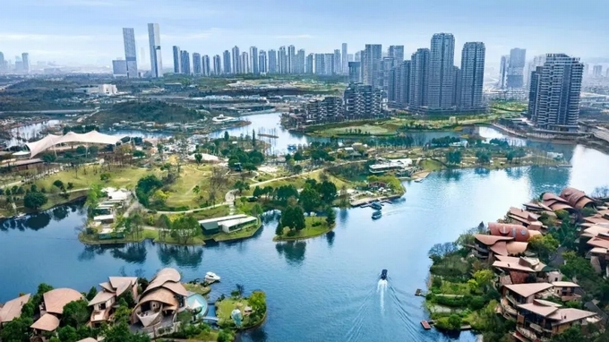 成都麓湖生態城——中國“四大神盤”之一,堅持以城市形態與生態景觀完全融合的混合開發模式,聚合高端居住、高端產業及多元生活方式配套為一體,逐漸發展為一座以“水生態”為核心的新城。