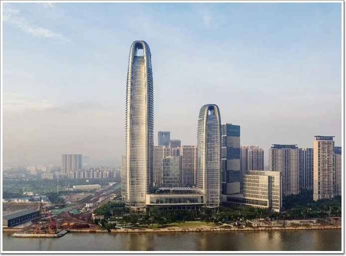 廣州東塔、西塔作為廣州珠江新城CBD中軸線上的對稱雙塔,被人們戲稱為“建筑界的龍鳳胎”。其中,東塔為廣州第一高樓——廣州周大福金融中心,由江河幕墻負(fù)責(zé)其幕墻工程。其外立面的玻璃幕墻上有陶土豎框貫穿整個建筑,被稱為“世界上最高的陶土板應(yīng)用”,是廣州的一處標(biāo)志性建筑景觀和熱門打卡地。