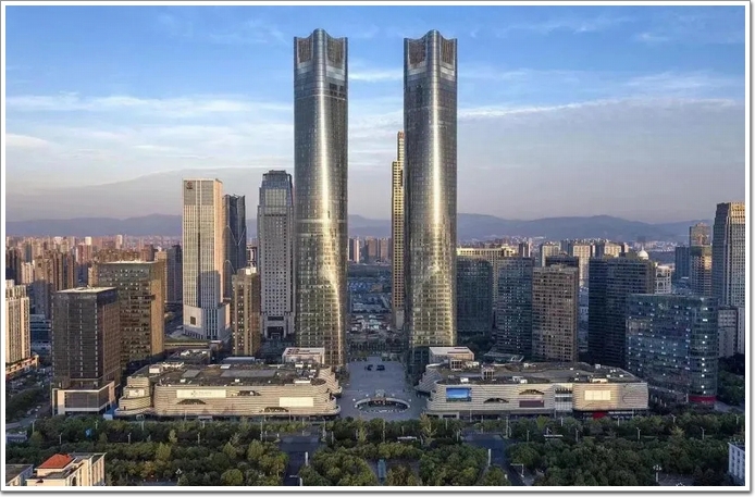 南昌綠地中心雙子塔作為南昌的標(biāo)志性建筑之一,是江西第一高樓、中國中部最高雙子塔。兩棟303米的超高層建筑如雙星閃耀,設(shè)計靈感來源于南昌市市花——金邊瑞香。建筑提取金邊瑞香獨(dú)特的造型,并將其運(yùn)用于塔冠,幕墻采用了冷彎玻璃面板,使得大廈呈現(xiàn)出波浪形的輪廓,賦予雙子塔藝術(shù)的美感。
