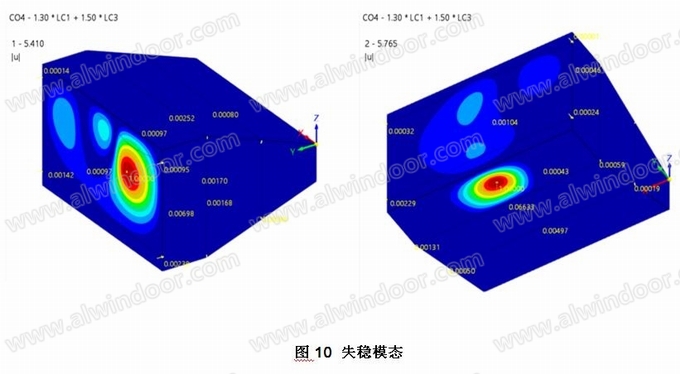 還需要考慮端部封板的穩定性,對其進行了失穩模態分析,參見圖10。