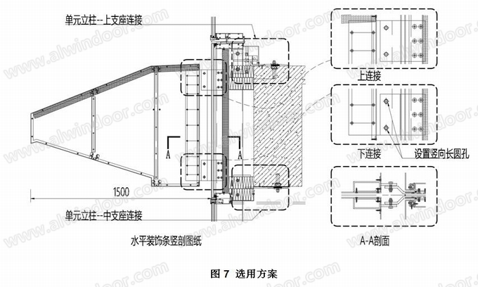 水平大裝飾帶與雙支座立柱連接情況下,結構受力較為復雜,本文給出三個建議方案,參見圖6。