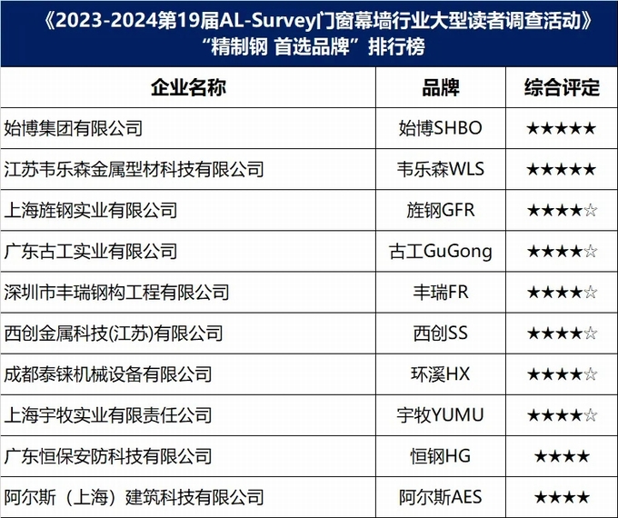 后續,我們將熱忱歡迎廣大門窗幕墻行業優秀的“精制鋼(精致鋼)”品牌企業積極報名,并提交資料,參與到中國建筑金屬結構協會鋁門窗幕墻分會指導,中國幕墻網ALwindoor.com組織開展的品牌推薦活動中。