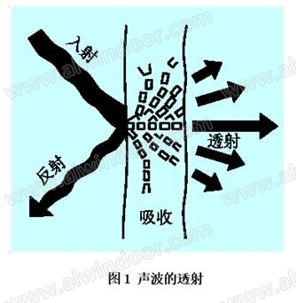 ②透射。聲波透過墻體從一側(cè)向另一側(cè)傳播的現(xiàn)象,可表示為:聲波à墻體產(chǎn)生振動à再輻射。見圖1。