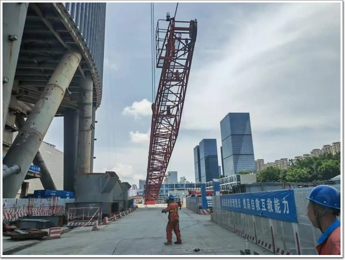 經(jīng)過(guò)中建三局專(zhuān)家現(xiàn)場(chǎng)研判,對(duì)塔吊實(shí)施兩部大臂拆除,保留一部自行旋轉(zhuǎn);對(duì)辦公區(qū)生活區(qū)臨建設(shè)施進(jìn)行逐一加固,地下室提前布設(shè)8個(gè)水泵,將核心資料轉(zhuǎn)移至安全區(qū)域。
