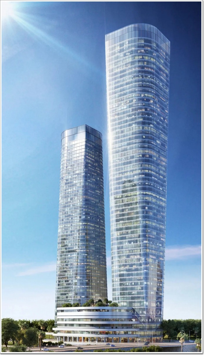 接下來是空間分配的設(shè)計挑戰(zhàn)。雙塔分別達到75層和65層的高度,需要綜合考量辦公、住宅和商務(wù)等多種功能需求。