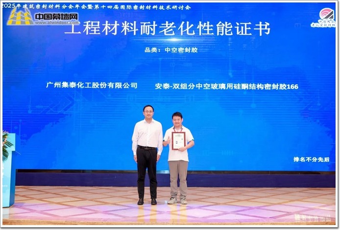 西卡(中國)有限公司黃祖群發表《西卡硅酮膠快速固化解決方案》主題演講;中國建材檢驗認證集團蘇州有限公司余奕帆發表《GB 16776-2025標準解讀》主題演講;陶氏(張家港)投資有限公司王文開發表《既有結構性裝配幕墻翻新低碳之路》主題演講;廣州集泰化工股份有限公司段亞冰發表《堅守創新,綠色發展-37年堅守,講好如膠似漆的故事》主題演講。