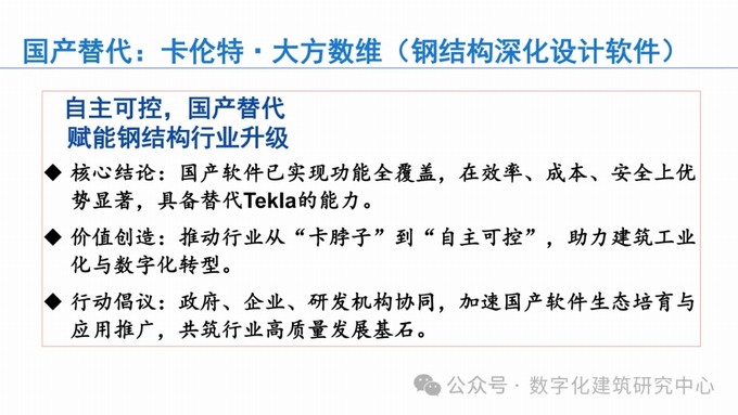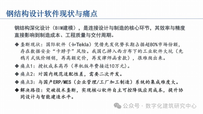 編者按:9月13日,在2025鋼結(jié)構(gòu)發(fā)展前沿技術(shù)研討會(huì)上,林樹枝博士做了“鋼結(jié)構(gòu)BIM建模軟件國產(chǎn)化替代”的主題報(bào)告,報(bào)告詳細(xì)闡述了解決工業(yè)設(shè)計(jì)軟件“卡脖子”問題的重大意義。介紹國內(nèi)自主研發(fā)的鋼結(jié)構(gòu)深化設(shè)計(jì)軟件“卡倫特·大方數(shù)維”的突出優(yōu)勢(shì):100%國產(chǎn)高性能三維圖形平臺(tái),云端協(xié)同,多專業(yè)覆蓋,“設(shè)計(jì)-生產(chǎn)-施工-運(yùn)維”全流程數(shù)據(jù)閉環(huán);通過核心技術(shù)自主可控,打破國外技術(shù)壟斷,實(shí)現(xiàn)從“跟跑”到“領(lǐng)跑”的跨越;助力鋼結(jié)構(gòu)行業(yè)實(shí)施深化設(shè)計(jì)軟件的全面國產(chǎn)化替代,賦能鋼結(jié)構(gòu)行業(yè)轉(zhuǎn)型升級(jí)及高質(zhì)量發(fā)展。報(bào)告內(nèi)容豐富,資料翔實(shí),有較高的技術(shù)含量。經(jīng)征得林樹枝博士同意,特分享如下: