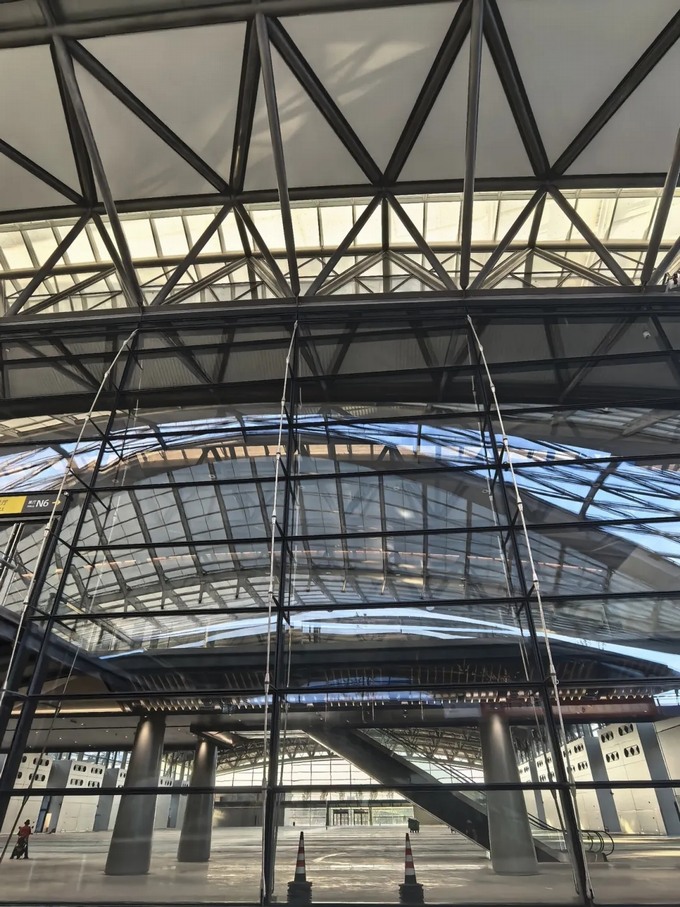 目前,項目已完成鋼結構主體、地下室結構施工,全面轉入幕墻、屋面、膜結構和裝飾安裝施工階段。