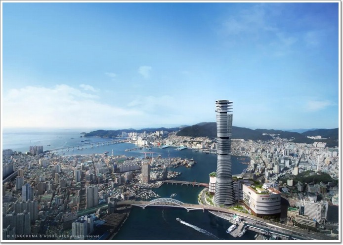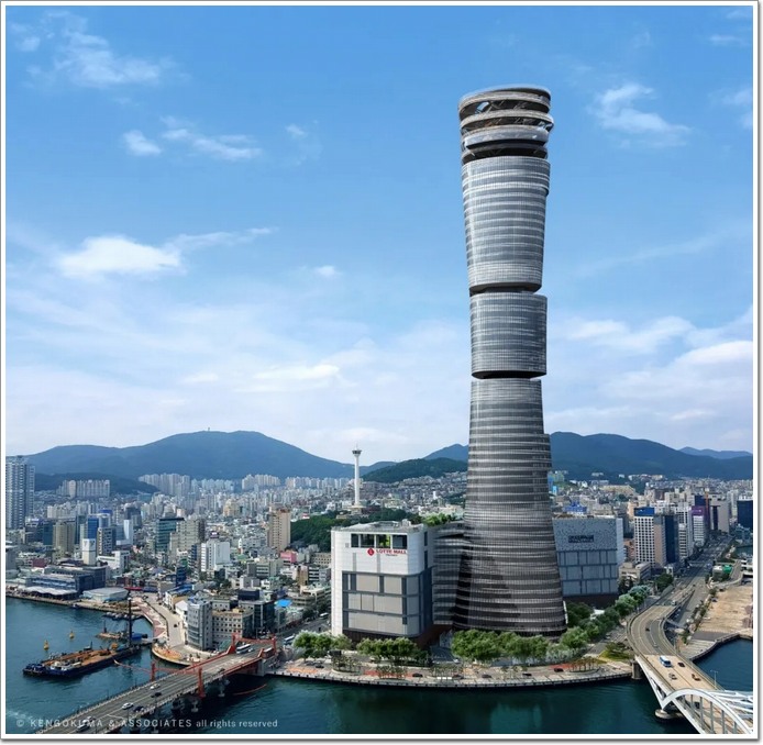 韓國釜山,矗立起一座由日本知名建筑師「隈研吾」打造的全新幕墻超級摩天樓——釜山樂天塔。