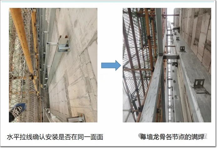 主龍骨(如80×60×3鍍鋅方管)需調平后焊接,焊縫飽滿且打磨平整。