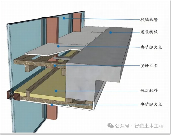 保溫、防火棉需根據設計圖紙要求的厚度現場實測的寬度尺寸進行裁切后安裝于保溫、防火鋼板內,安裝需在晴天進行,在板塊安裝完后并需即時封閉,以避免被雨水淋濕,安裝采用的保溫、防火棉應采用優質產品,抗火期要達到設計要求。保溫、防火棉應連續地密封于樓板與金屬板之間的空位上,形成一道保溫、防火帶、中間不留任何空隙。