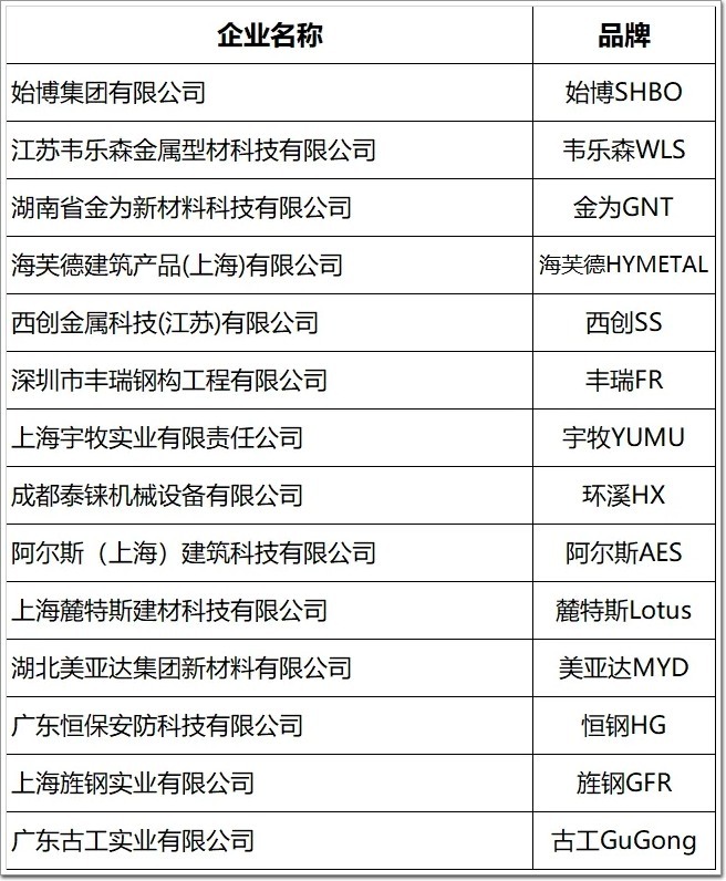 精制鋼企業(品牌)|(14家提交數據參與展示):