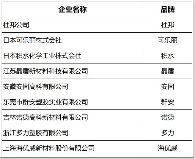 SGP|PVB|EVA膠片企業(品牌)|(9家提交數據參與展示):