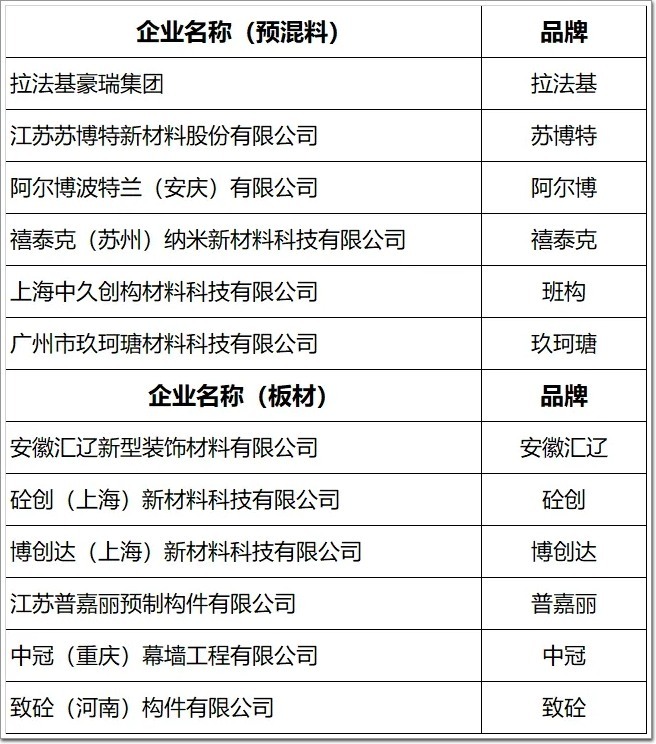 UHPC企業(品牌)|(12家提交數據參與展示):