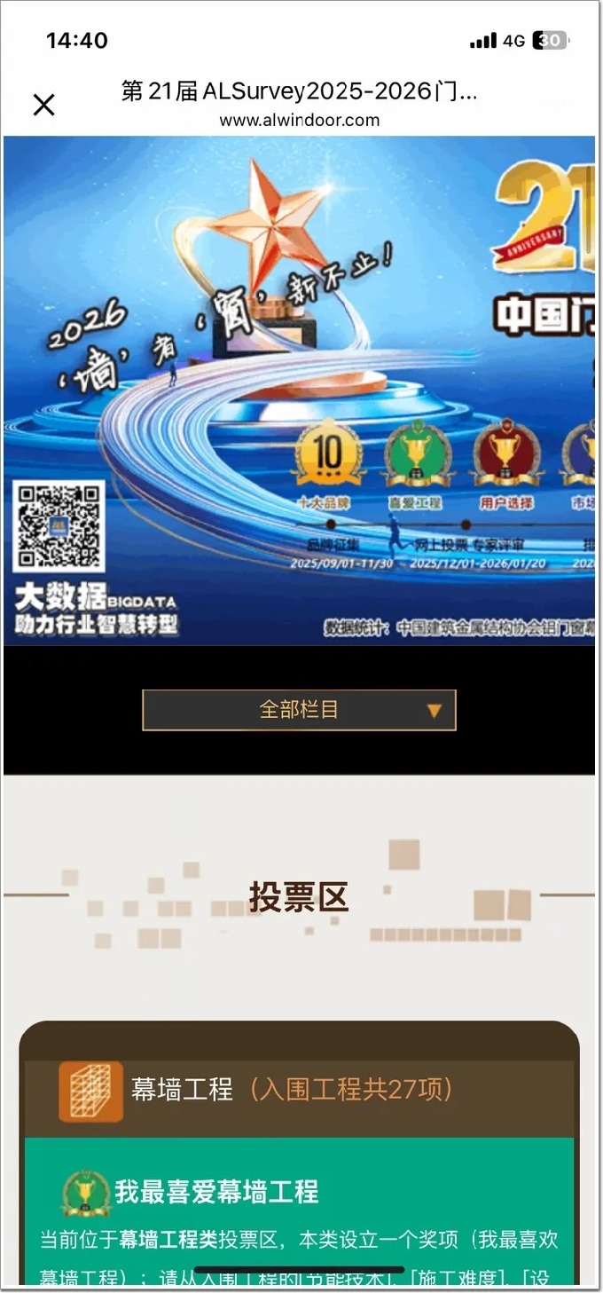 2025-2026年度第21屆門窗幕墻行業大型讀者調查活動