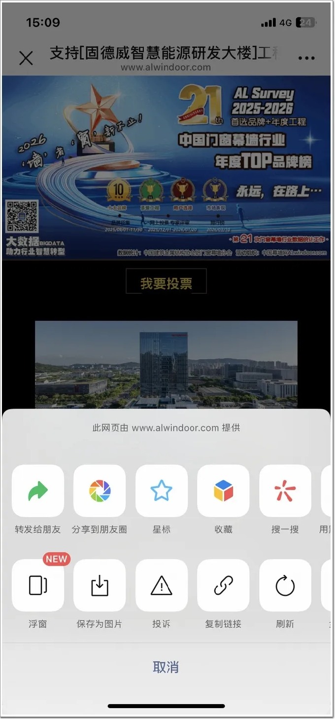 點擊“工程”或“品牌”下面的“分享拉票”,即可進入相應的投票頁面