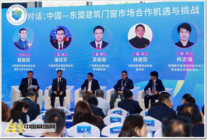 圓桌對話環節在中國建筑金屬結構協會建筑門業分會會長戴建國的主持下將上午會議推向高潮。中國建筑金屬結構協會副秘書長潘冠軍、廣西建筑業聯合會常務副會長梁振南、馬來西亞惠安總商會秘書長林建勛、柬埔寨中國港澳僑商總會常務副會長兼秘書長林志強四位嘉賓,圍繞中國—東盟建筑門窗市場的發展現狀與挑戰展開深度對話,為與會企業提供了寶貴的市場洞察。幾位嘉賓全面介紹了東盟建筑門窗市場的需求特點和中企的機遇,展望了未來雙方合作的潛力和發展趨勢,并對東盟市場面臨的挑戰和風險給出了建議。嘉賓特別提到:中企出口東盟要特別關注本地化與長期化,深入了解當地文化習俗與產業政策,適應與國際各地區品牌競爭的局面。潘冠軍副秘書長還特別強調,中國企業面向東盟出海,要保持戰略定力,堅定信心、加強協作,爭取在東盟市場站穩腳跟,逐步打開市場。