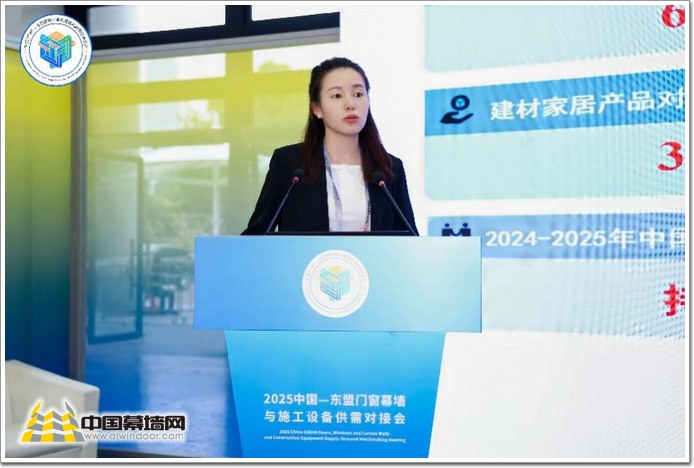 西安高科建材科技有限公司市場規劃部負責人朱丹以“科創領航——與東盟共建建材出海新征程”為題作了報告。她指出,高科建材作為中國建筑金屬結構協會副會長單位,具備建筑門窗幕墻產業鏈的完整產品線,擁有雄厚的科技創新實力與豐富的海內外業績,公司將以“深度本地化+鏈式出海”的市場策略從單一產品輸出轉向與當地協同共生模式。她呼吁業內企業深化合作、共享資源,攜手開拓東盟市場新藍海,共同塑造中國建材高端、綠色、智能的國際新形象。