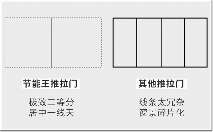 以12米超長洞口舉例,傳統推拉門至少需要進行4等分,而節能王推拉門得益于極限尺寸的突破,僅需2等分。