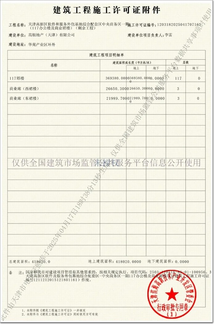 ▲ 天津117大廈施工許可證截圖