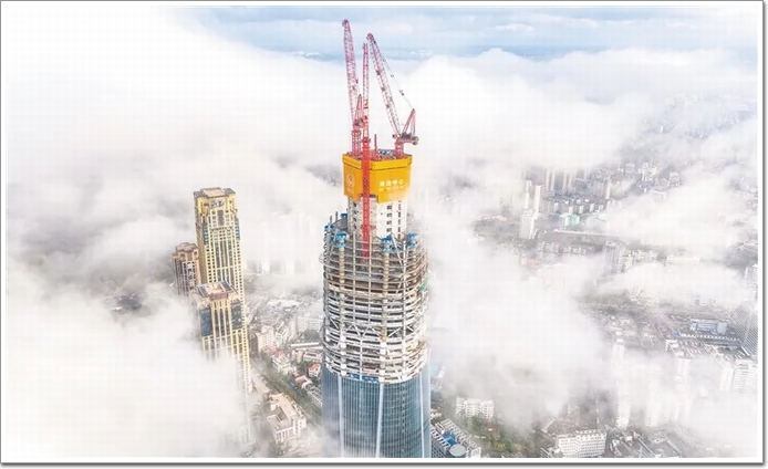 陽光下,玻璃幕墻熠熠生輝,建設(shè)者們正在全力以赴,沖刺300米高度的節(jié)點(diǎn)(詞條“節(jié)點(diǎn)”由行業(yè)大百科提供)目標(biāo)!