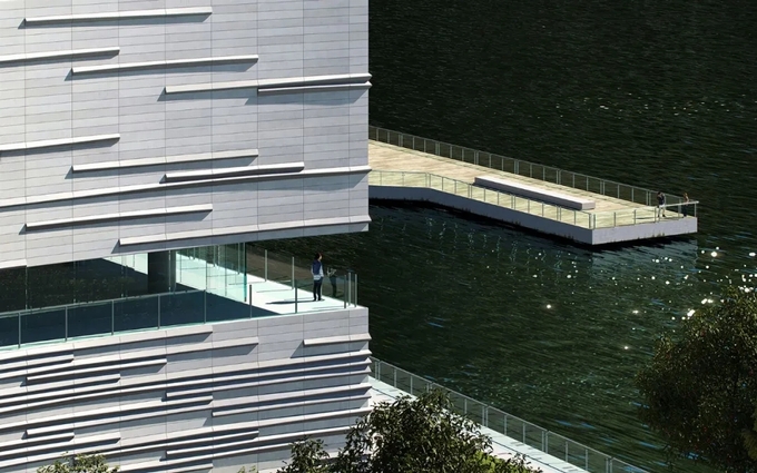 此外,這種獨特的形式還可轉化為螺旋形樓梯,將地面和屋頂連接起來,使河岸美景盡收眼底。螺旋元素貫穿整個項目,穿梭于大堂、大廳和各個禮堂。