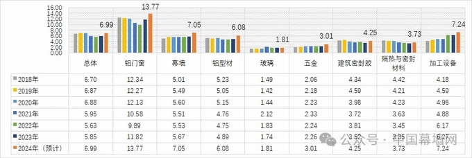 2018年-2024年鋁門窗幕墻利潤率匯總表