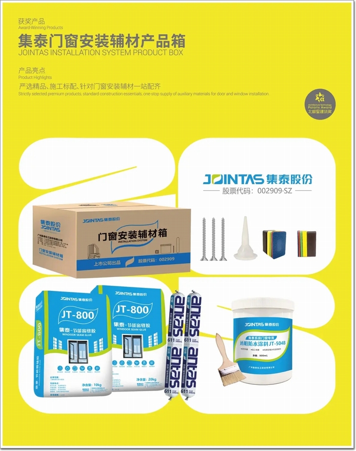 此外,集泰門窗安裝輔材箱憑借其創(chuàng)新性與實用性,榮膺“第11屆北極星建筑獎”。嚴選精品、一站配齊,極大地節(jié)省了采購時間和成本,真正做到一箱在手,裝窗不愁!